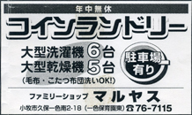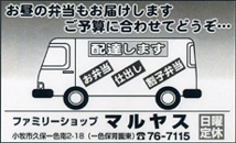 マルヤスホームページご来店頂きましてありがとう御座います。当店はソフトドリンク・アルコール類の販売だけではなく精肉・お弁当・惣菜・オードブルなどで、イベント・パーティ・バザー・企画など、各種イベントのご相談に応じてご提案し、地域のお客様がご要望するイベントのトータル・コーデネーターとしてご利用して頂けるお店です。尚、店舗正面右隣併設のコインランドリーもご利用下さい。