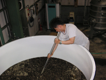 この会社は設立当初は後川沿いの水田・畑で栽培された人参と状流水を使った人参焼酎「珍(めずらし)」で立ち上げました。また、麦焼酎の部類では割と後発のメーカーみたいです。そんな蔵のモットーを聞いてまいりました。「周りに流される事なく独自の路線で、一つ一つの作業を丁寧にやっていく事に特に気をつけて日々製品作りに励んでおります。麦を焙煎すると言う事も香りや味わいに特徴が出るという事はもちろんですが、製造上の不純物(油分に含まれる)を焙煎する事によって少しでも飛ばして、少しでも酔い覚めが良くなるようにとのコンセプトから企画しましたし、焼酎が認知されてきたおかげで麹も基本の白から黒や黄色が登場してきましたが、設立当初より弊社商品(人参、焙煎麦)の現在までの作りには黄麹が一番適しているとの考えから、こだわりを持って使用しており、樫樽貯蔵の麦にも焙煎をした麦をさらに樫樽に貯蔵する等して、小さな蔵であり又研醸でしか出来ない事をこれからも続けて行きたい。」