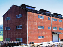 ここは製造工程がガラス越しに見学でき、希望者は体験(要予約)もできるそうです。ここのコンセプトは「南九州の伝統的産業である本格焼酎の製造技術を継承するために、コンピーターを使わない人の五感による手造りの蔵」。「建物は明治・大正時代の蔵を、地元特産の飫肥杉を使って再現しています」とのお話。