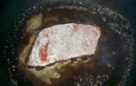 サーモンに塩コショウをし、全体に薄く小麦粉をつける。