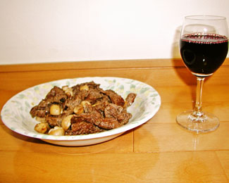 材料(3人分) 牛もも肉うす切り・・・300g マッシュルーム・・・6〜8個